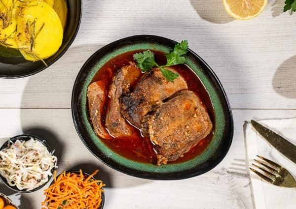 לשון בקר ברוטב פטריות, לשון בקר רך ועסיסי בבישול ארוך.
